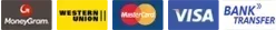 Payment via Bank, MoneyGram